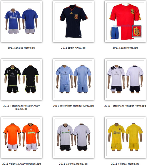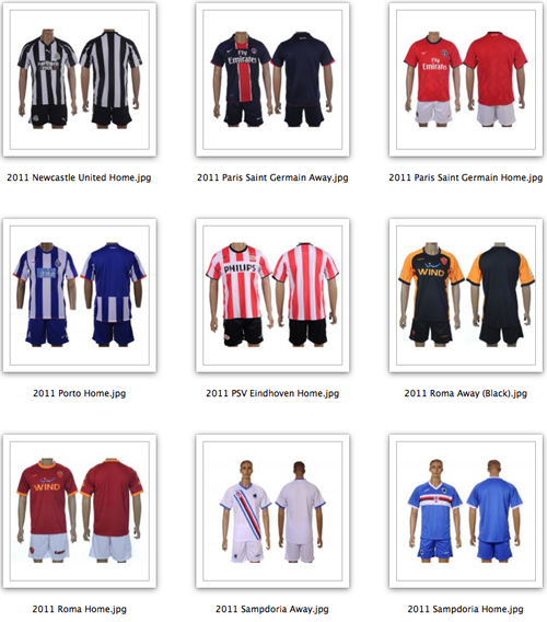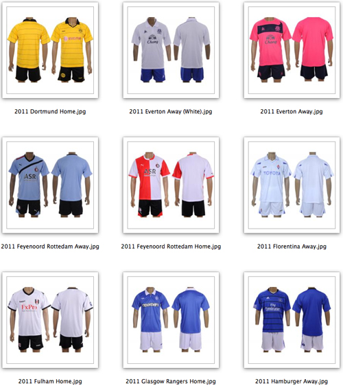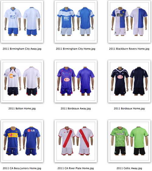 Please note that choices are not limited to these options. Full options can be found here: Uniforms. If there is a different uniform colour you wish to have or varations between Home & Away you may request them. Here are you 2011 Outdoor Soccer League uniform selections: